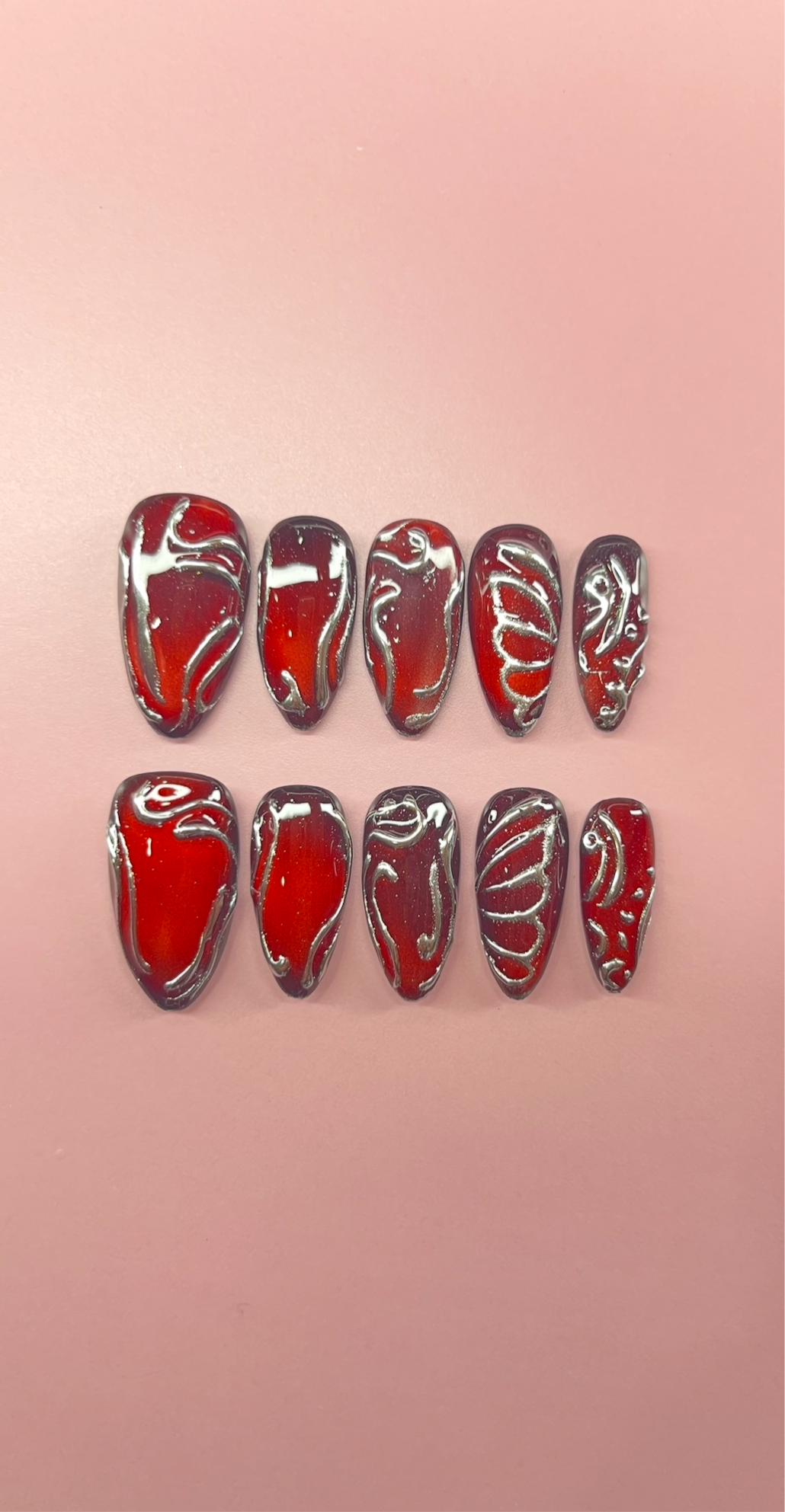 Dark Night Fairytale is a beautiful nail set hand-painted, making the illusion of getting a fresh set from the nail salon! To order, email a picture of your fingers next to a coin for correct size measurements, put the name on the order as the subject in the email. Send the pictures to ineetmattu@gmail.com or DM to Instagram @_shine_nailsss.