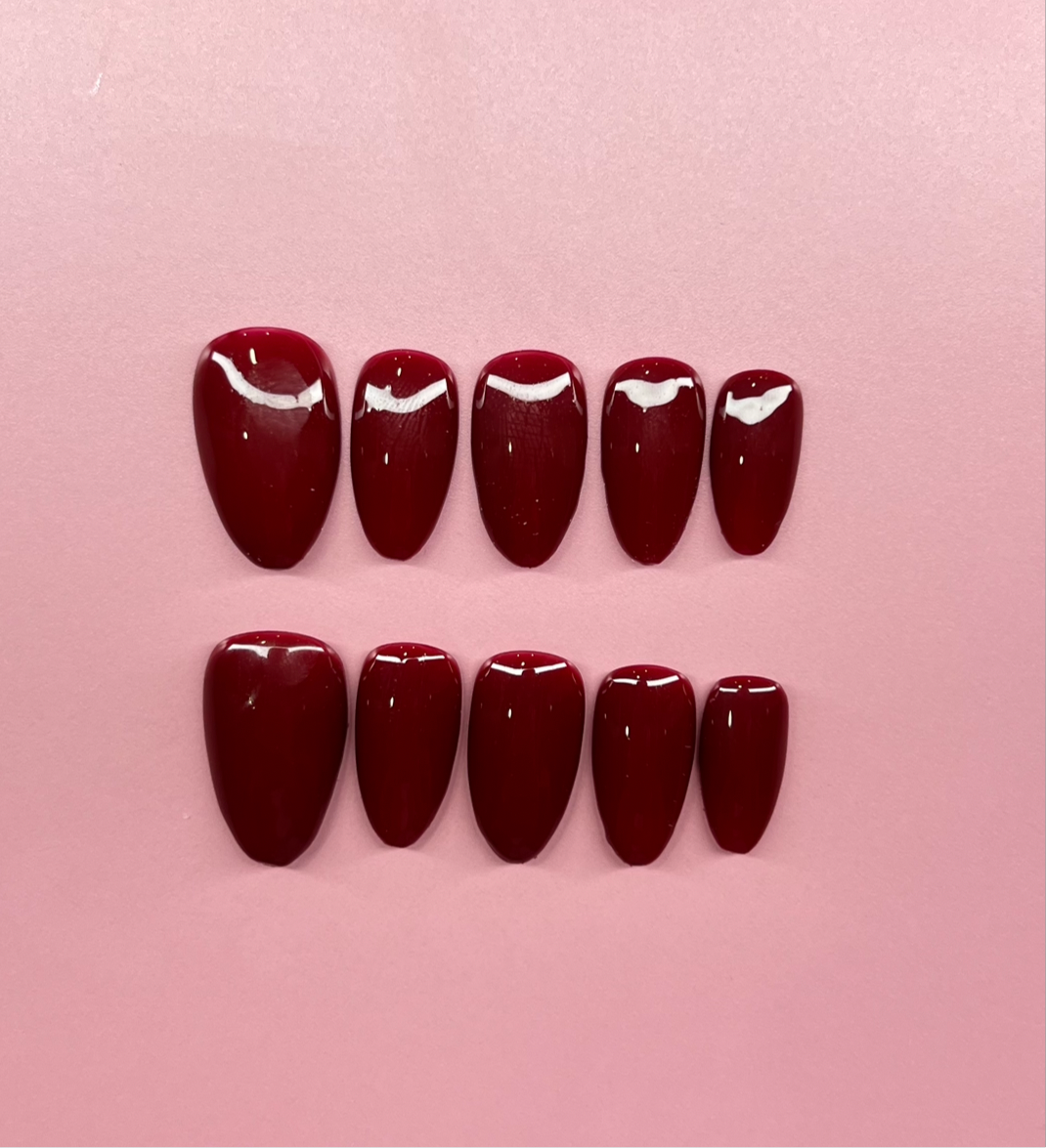 Wine is a cute and elegant nail design that is currently very popular. A beautiful nail set hand-painted, making the illusion of getting a fresh set from the nail salon! To order, email a picture of your fingers next to a coin for correct size measurements, put the name on the order as the subject in the email. Send the pictures to ineetmattu@gmail.com or DM to Instagram @_shine_nailsss.